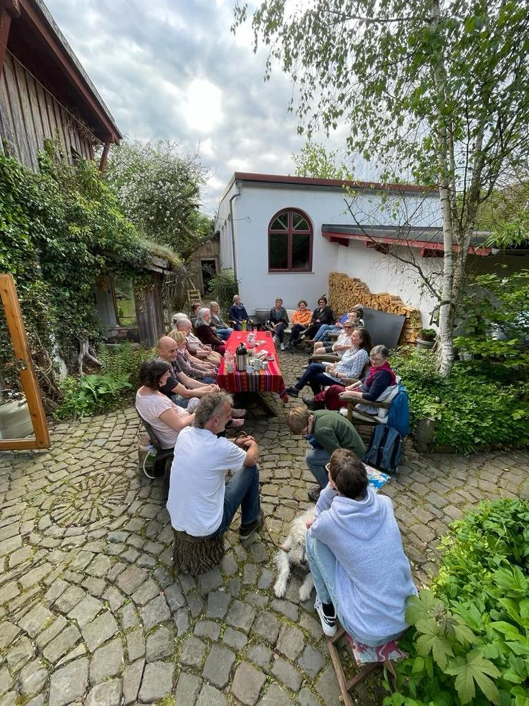 Schnell traten weitere Menschen und Orte auf den Plan: der Graswurzelhof in Au(Sieg), der inzwischen den weltbesten Underground-Schuppen “Kulturhafen” betreibt, der Lenzhof in Röcklingen, der Rother Hof in Hamm(Sieg), der Schwarzpappelhof in Rott, das AKKU Haus in Bach, der Hof Kuppen in Halscheid (heute Buddhistisches Zentrum Taravana), die Crew aus Eulenbruch. Alles selbst-organisierte Initiativen, die wir bis dahin überhaupt nicht auf dem Schirm gehabt hatten. Und sie sich gegenseitig (in großen Teilen) auch nicht.